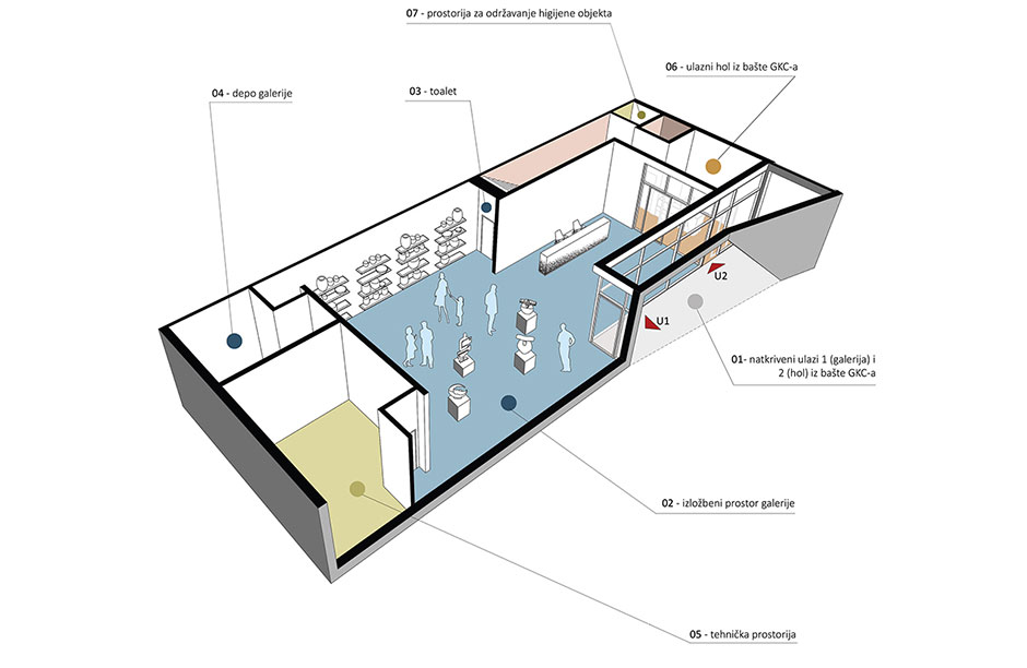 Okruženje u kome se projekat realizuje je izuzetno delikatno, što je uslovilo i pažljiv, promišljen pristup u projektovanju. Forma novog objekta nadovezuje se na arhitektonske karakteristike postojećeg ambijenta, posebno na formu obližnje Gradske galerije.
