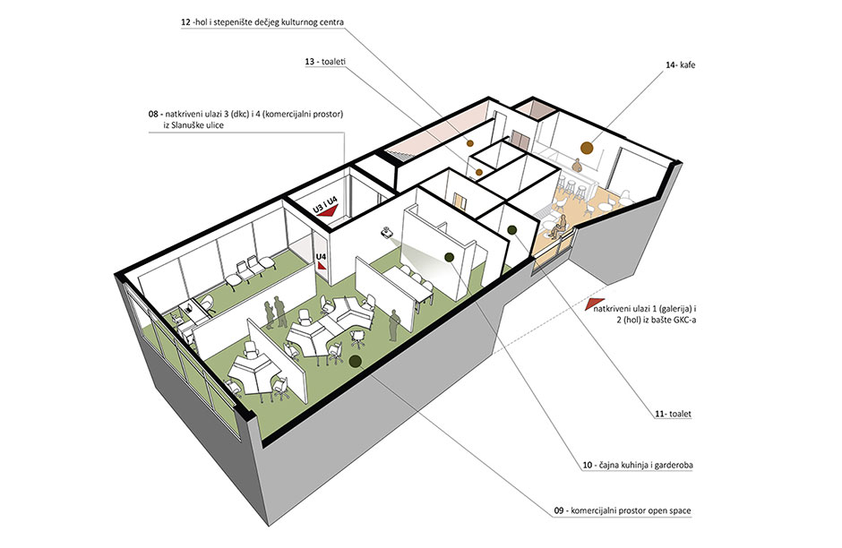 Objekat je zamišljen kao savremeni, multifunkcionalni prostor koji objedinjuje Dečji kulturni centar i izložbenu galeriju.